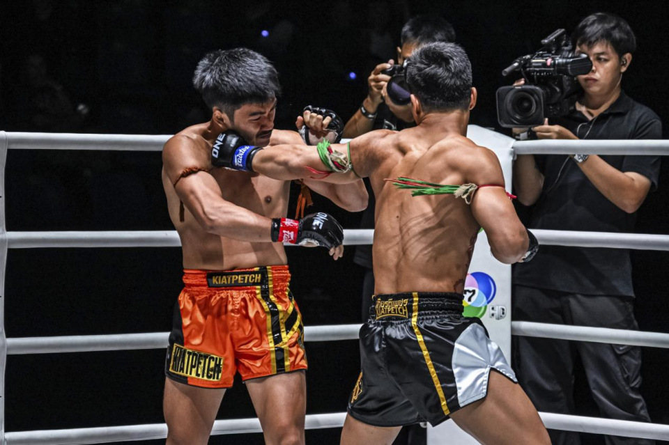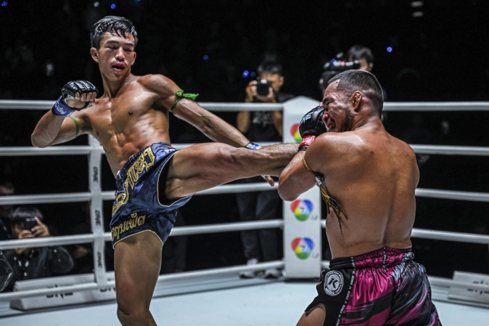 提亚开局便以重击击倒约德乌东,随后又以漂亮的右手拳再次伏击,KO得回奏效,得回35万泰铢的花红。