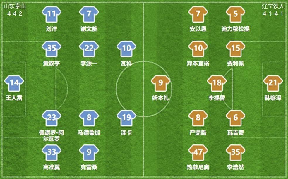 本场王大雷坐镇球门,阿尔瓦罗首秀,与高准翼、黄政宇构成三中卫,刘洋、谢文能出任边翼卫。马德鲁加、李源一搭档双后腰,前场三叉戟瓦科、泽卡、克雷桑尽数出战。泰山队五外助出击,彭啸、陈泽仕等小将在替补席待命,郑铮、李小恒、段刘愚等东谈主也进入大名单。